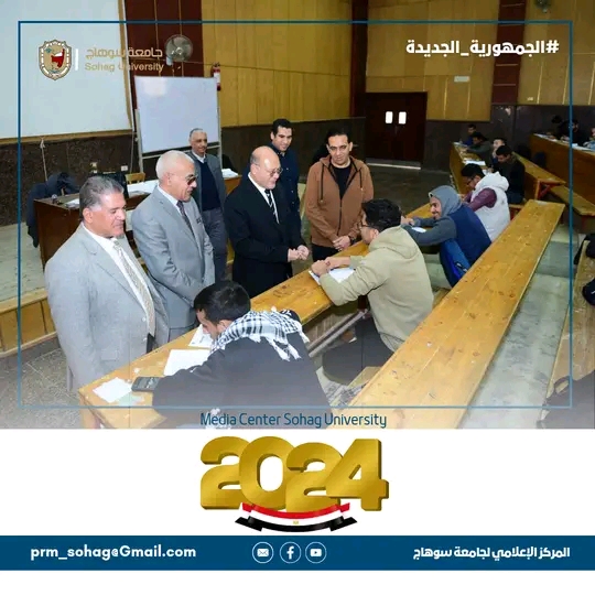وجه الدكتور حسان النعماني رئيس جامعة سوهاج خلال جولته صباح اليوم لتفقد سير أعمال إمتحانات الفصل الدراسي الأول للعام الجامعي ٢٠٢٣-٢٠٢٤م بكليات الآداب والتربية والهندسة بالمقر الجديد للجامعة، بضرورة تواجد أعضاء هيئة التدريس داخل اللجان للإجابة على كافة استفسارات الطلاب، وتوفر المناخ الملائم لهم لأدائها بسهولة ويسر، و الإلتزام بالإجراءات التنظيمية لأعمال الإمتحانات، وإتخاذ كل التدابير اللازمة لضمان حسن سيرها، ومواجهة أى إهمال أو تقصير أو أعمال من شأنها الاخلال بعملية الإمتحانات، وفقًا لأحكام قانون تنظيم الجامعات ولائحته التنفيذية.