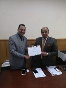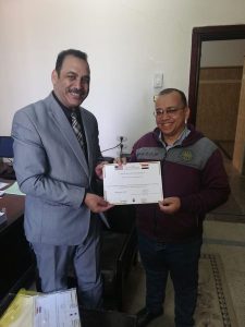 تسليم شهادات حضور تدريب منسوبي كلية الحقوق من الجهاز الإداري واعضاء هيئة التدريس التدريس حول قانون الأشخاص ذوي الإعاقة والتصميم الشامل لتكنولوجيا التعليم لذوي الإعاقة من خلال الورش التدريبية التي نظمتها جامعة سوهاج ممثلة في مركز خدمة الطلاب ذوي الإعاقة ببالمقر الجديد بالتعاون مع هيئة امديست الامريكية