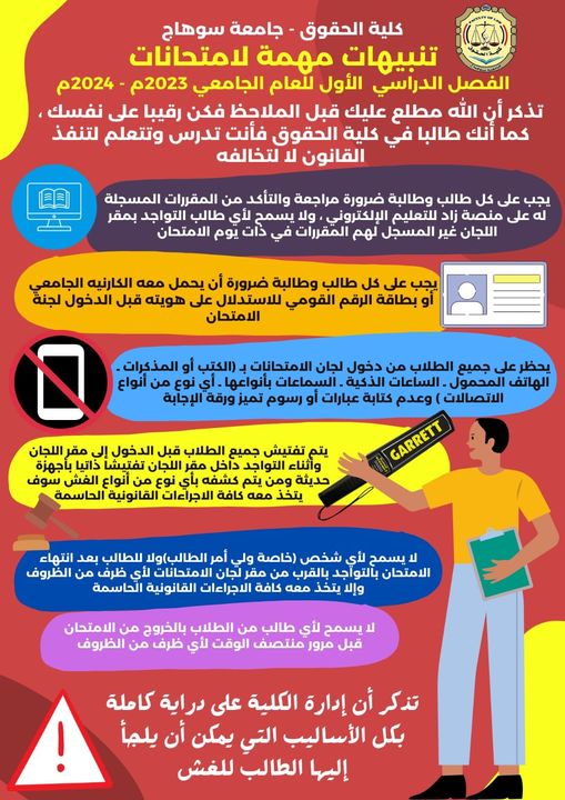 تنبيهات مهمة لامتحانات الفصل الدراسي الاول للعام الدراسي 2023م-2024م