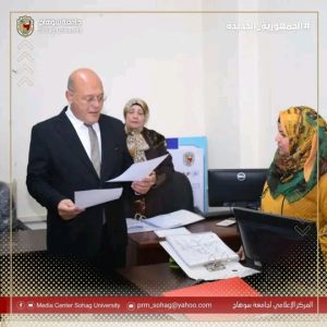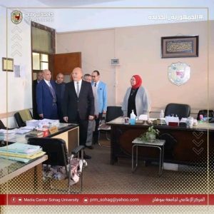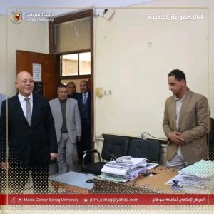 رئيس جامعة سوهاج يتابع سير العمل بالإدارات ويؤكد على ضرورة رفع قدرات العاملين لتحقيق التنمية الإدارية.
