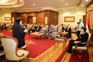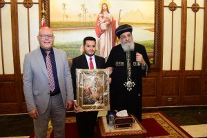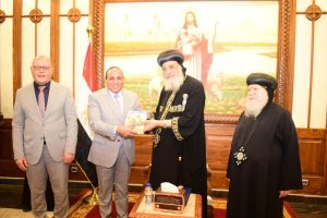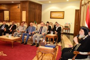 مع وفد جامعة سوهاج برئاسة الدكتور حسان النعماني رئيس الجامعة، وذلك خلال زيارته الودية، للمقر البابوي بالقاهرة، يصاحبه الدكتور عبدالناصر يس نائب رئيس الجامعة لشئون التعليم والطلاب، والدكتور خالد عمران نائب رئيس الجامعة لشئون خدمة المجتمع وتنمية البيئة، ونيافا الأنبا باخوم مطران سوهاج، ونخبة من عمداء الكليات ووكلائهم، والدكتور علاء غالب رئيس أسرة طلاب من أجل مصر، وكوكبة من طلبة وطالبات الجامعة.